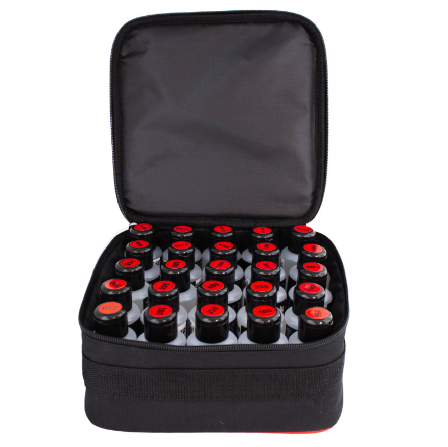 Zestaw 25 olejów silikonowych Ultimate Racing (75 ml) w praktycznej torbie transportowej. Idealny wybór dla zawodników RC – porządek, wygoda i precyzja w jednym!