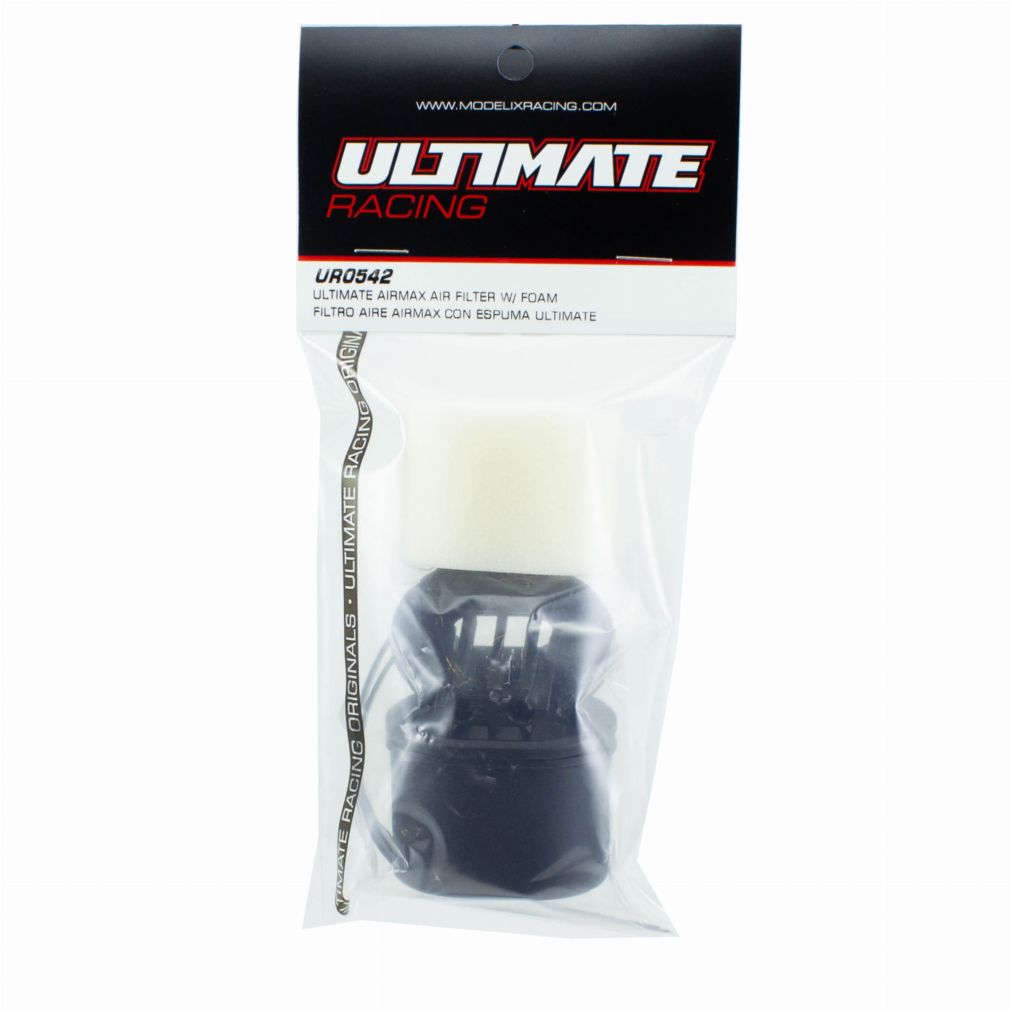 This is the AIRMAX Air Filter with 6 pre-oiled Filter Foams from Ultimate Racing. The AIRMAX concept is to achieve maximum airflow to the carburetor, while respecting the external dimensions of the filter to try to fit most of the 1/8 offroad cars and bodies. This is achieved by means of a short, large-diameter tapered rubber connector tube that accelerates airflow and an internal filter structure with a larger surface area, without compromising engine protection. The result is a noticeable increase in engine power and performance. The rubber connector tube is highly resistant to prevent unwanted damage. The filter is supplied with 6 pre-oiled single layer foams, and includes a filter cover with pre-marked holes that can be used on rainy days. Includes 2 adjustable plastic brakets to fit different cars. One is to fix it higher or lower. The other is to fix it closer or further horizontally. Both brackets have adjustable holes to give some leeway for easy adjustment. Includes 4 screws and 2 plastic ties for complete mounting of the filter and brackets.